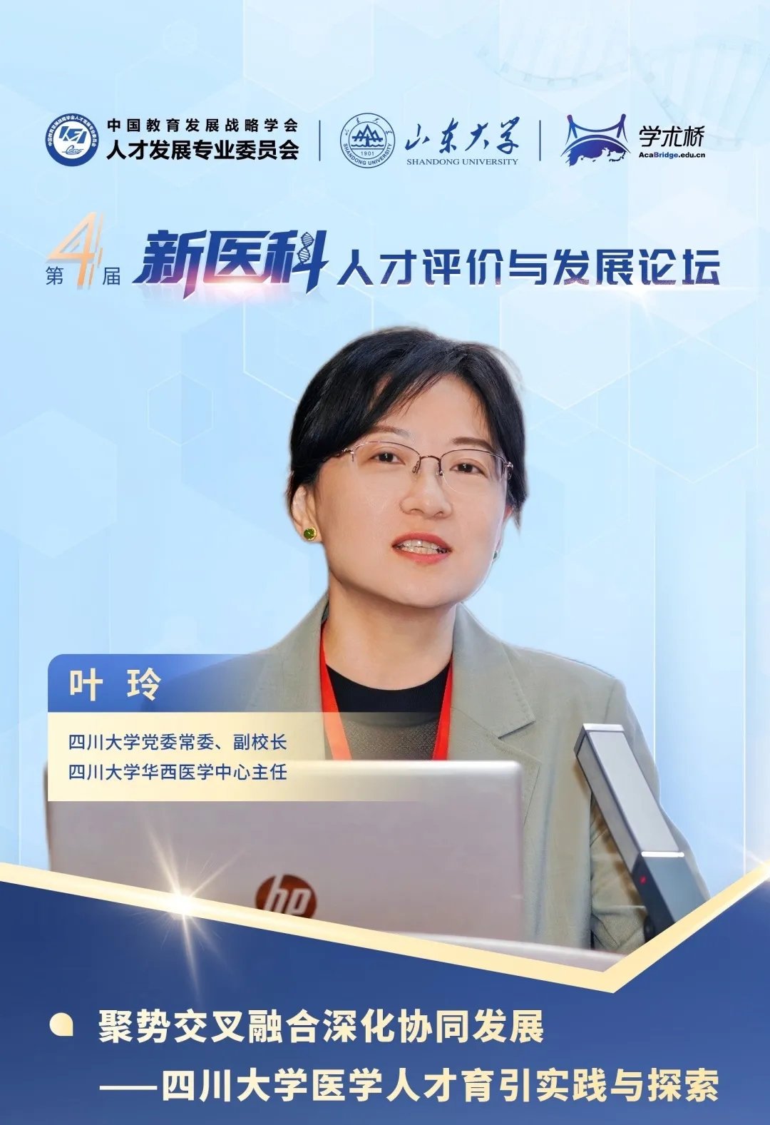 四川大学党委常委、副校长,四川大学华西医学中心主任叶玲分享了四川大学医学人才育引实践与探索。她提到,四川大学依托综合性大学优势,实施“医学 ”驱动学科发展总战略,深入推进医工融合发展,形成“全链覆盖”的“医学 ”重大创新平台集群优势。同时,学校牢固树立“人才是第一资源”理念,深入实施人才强校战略,实施特色人才育引方案、打造人才分类发展体系,着力构筑医学人才发展新高地。