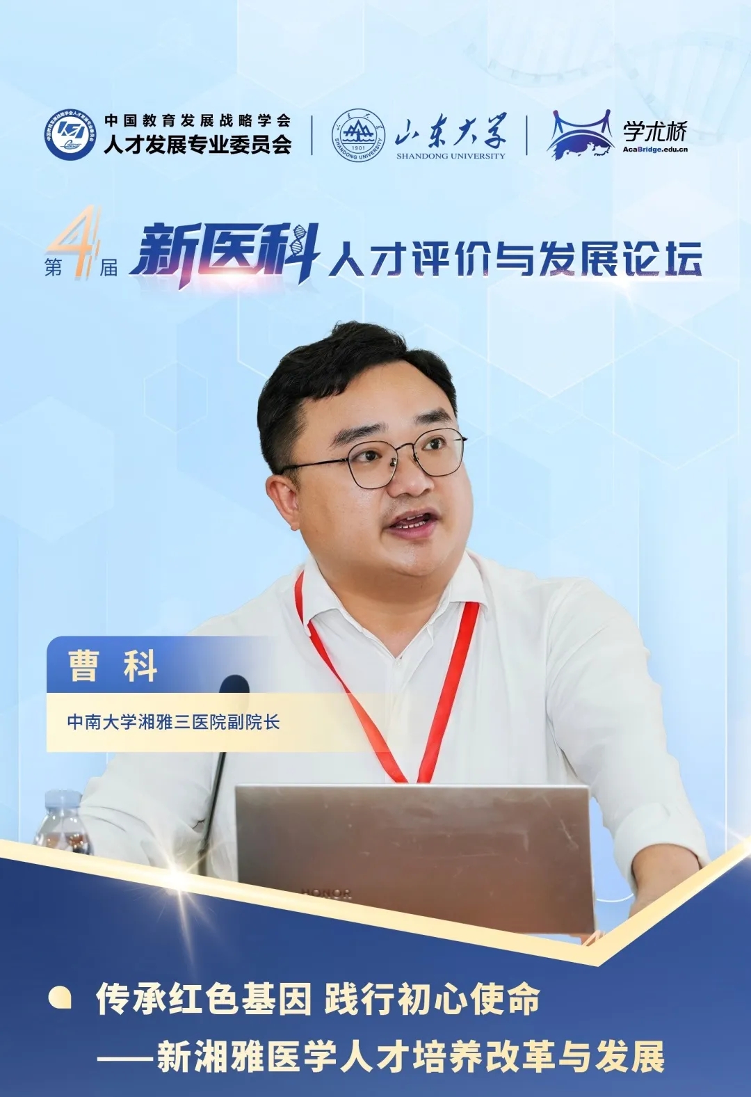 中南大学湘雅三医院副院长曹科系统阐述了新湘雅医学人才培养的创新实践。他指出,医院深入传承“求真求确、必邃必专”的百年湘雅精神,构建了以“三学一思一推进”为核心的教育改革框架,通过强化党建引领、优化人才评价体系、深化医教研协同,全面提升医学人才培养质量。医院创新实施多个专项政策,建立分层分类发展通道,着力培育兼具临床卓越能力与创新素养的复合型医学人才,为健康中国战略提供坚实人才支撑。