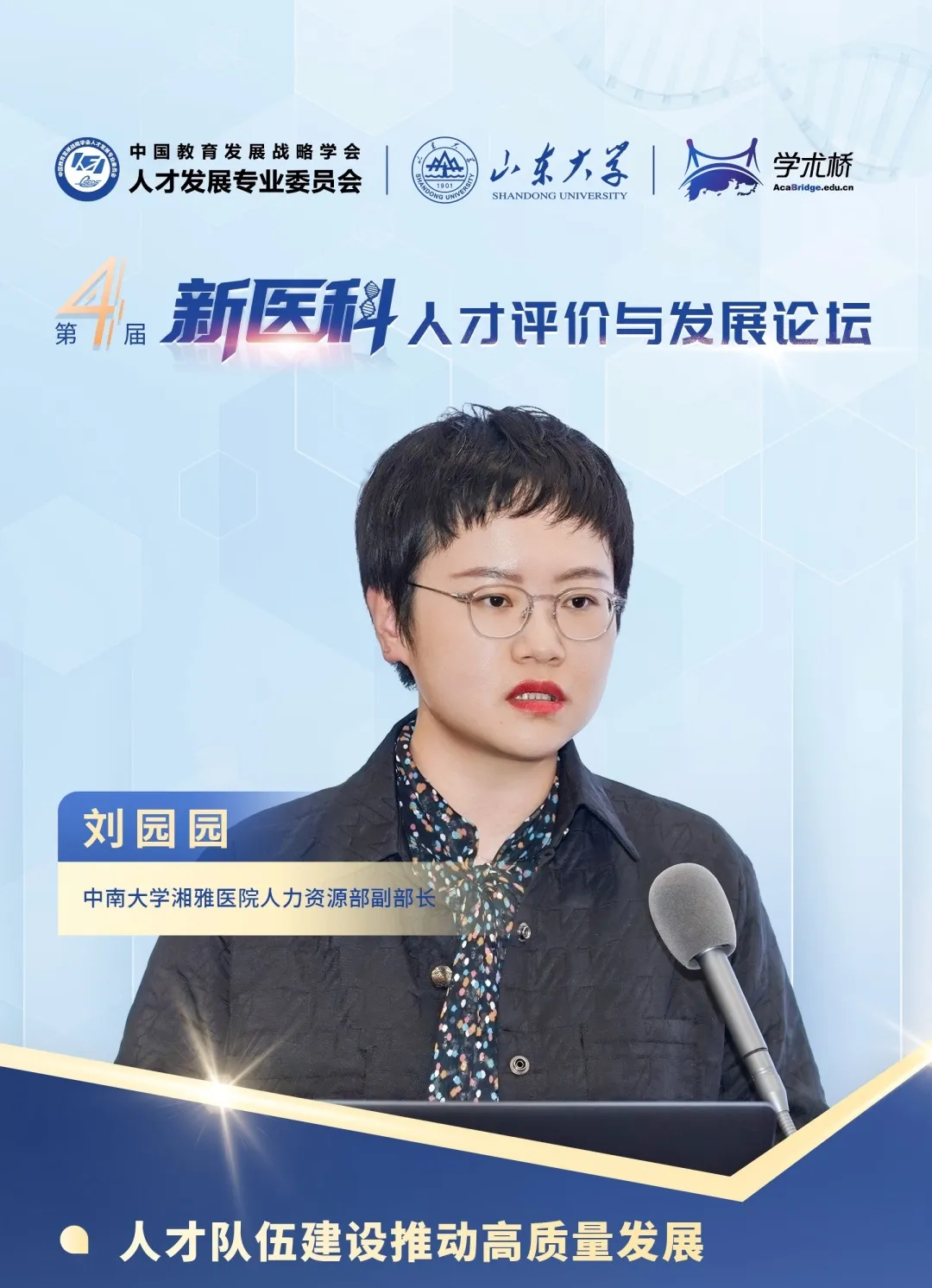 中南大学湘雅医院人力资源部副部长刘园园指出,中南大学湘雅医院秉持"加速度、跨越式、内涵型、高质量"的发展基调。在组织领导方面,严格落实党委领导下的院长负责制。在体系布局方面,构建了覆盖"选、育、用、留、评"全链条的制度体系,实施多元化人才培养计划,创新人才引进机制,营造良好人才发展生态。通过这些系统性举措,湘雅医院打造了一支结构合理、素质优良的人才队伍,为医院高质量发展提供了强有力支撑。