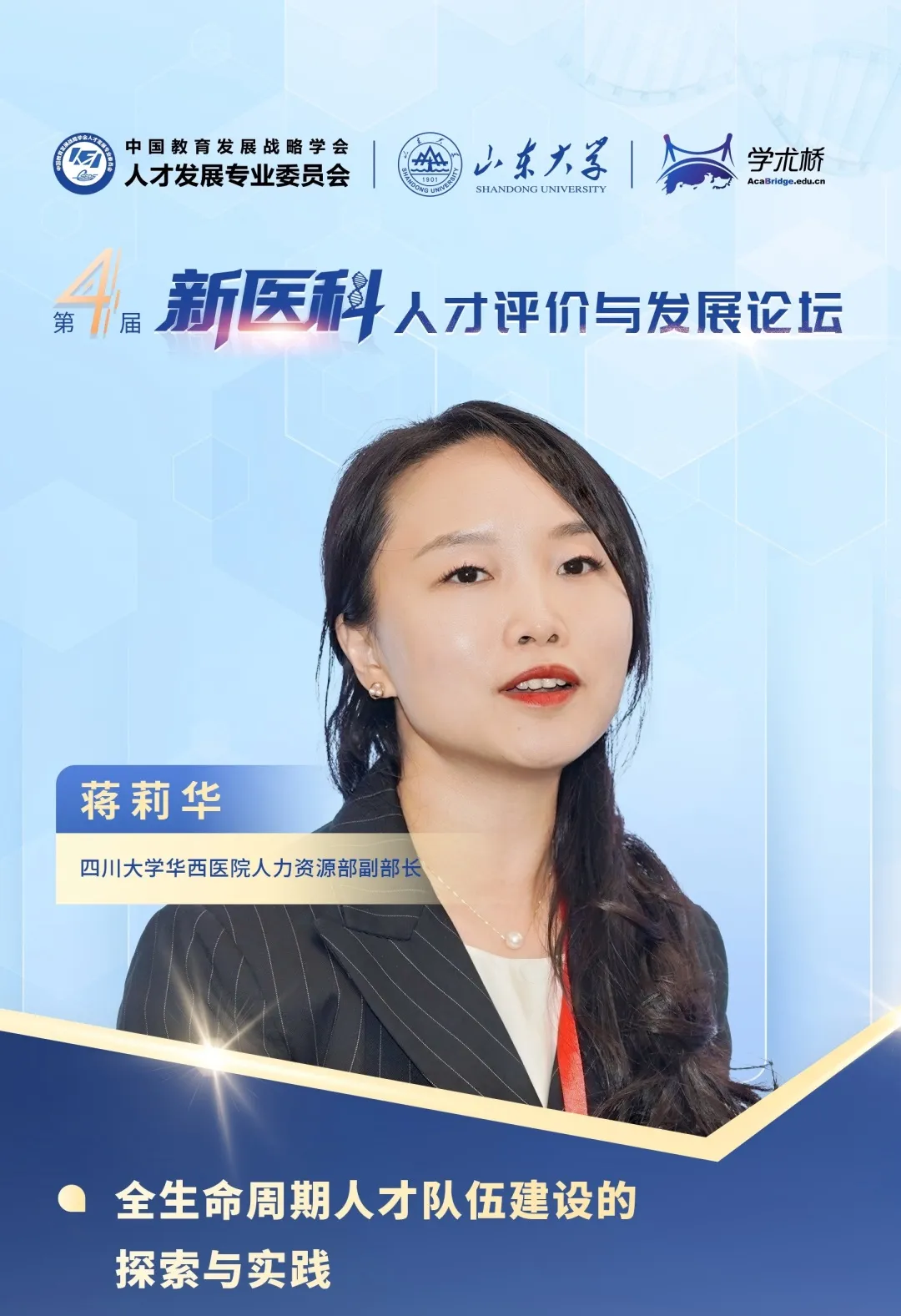 四川大学华西医院人力资源部副部长蒋莉华系统阐述了四川大学华西医院围绕“全生命周期”理念构建人才队伍体系所作的实践。她提到,医院依据人才成长阶段实施精准支持:在“初培期”,通过“启明星”基金、学术导师制和高质量博士后计划为青年人才奠基;在“成熟期”与“登峰期”,通过骨干培养、资源倾斜及“终身教授”等制度,孵化“国字号”与领军人才。整个人才体系辅以“分层分类、能上能下”的考核评价华西模式,破除“四唯”,系统性地“筑高原、建高峰”,支撑国家医学中心与世界一流医院建设。