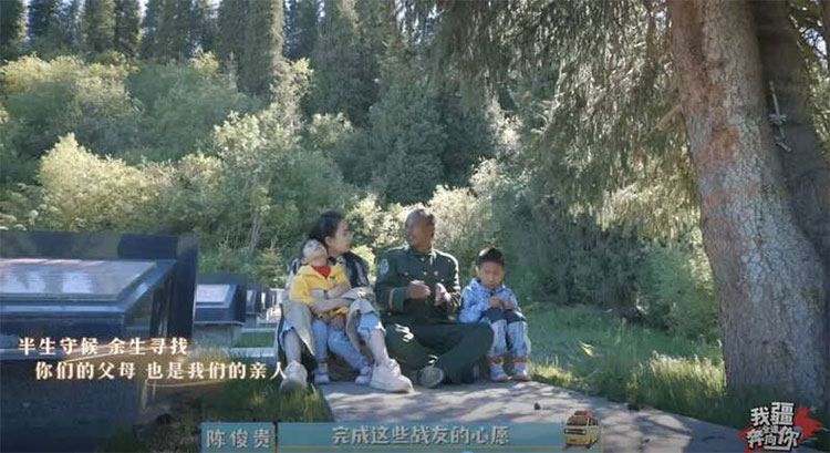 在乔尔玛烈士陵园里,兄妹俩陪着爸爸认真地干活。当扫到郑林书的墓碑前时,哥哥陈煜昊小声向贺瑶讲起了郑林书爷爷的故事。