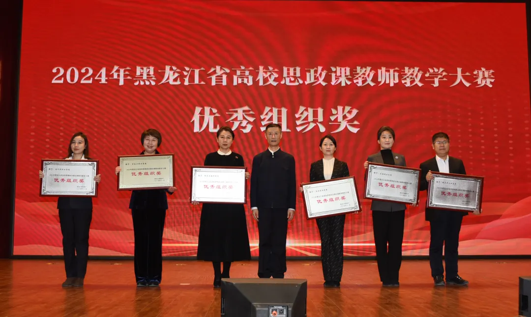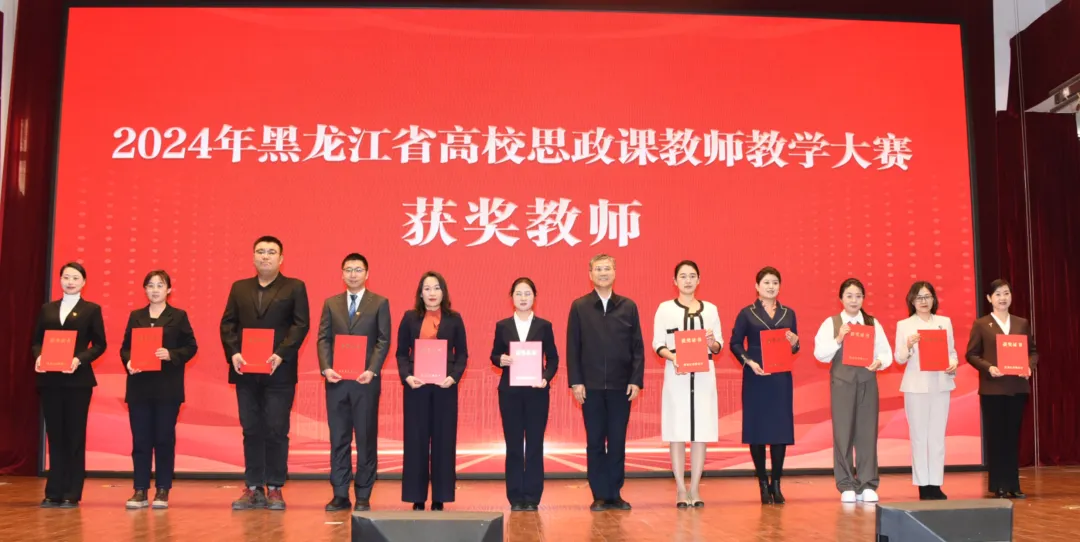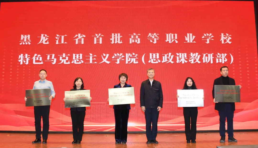 活动中,为5所黑龙江省首批高等职业学校特色马克思主义学院(思政课教研部)进行授牌,为2024年全省高校思政课教师教学大赛获奖教师代表和“优秀组织奖”获奖高校颁发证书和奖牌。