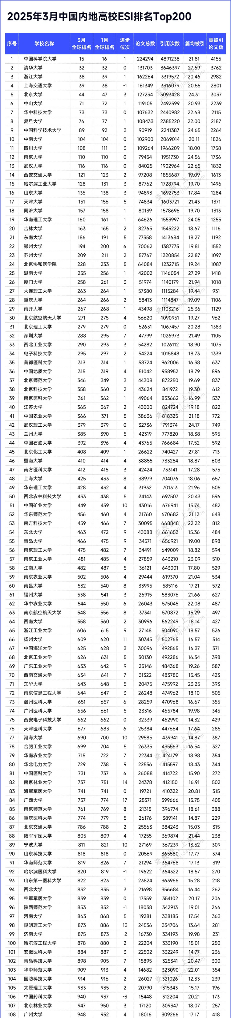 3月13日,科睿唯安(clarivate analytics)公布了2025年3月的esi最新数据。esi(基本科学指标数据库)是目前世界范围内普遍用以评价高校、学术机构、国家或地区国际学术水平及影响力的重要评价指标工具之一。本次数据覆盖时间范围为2014年1月到2024年12月。