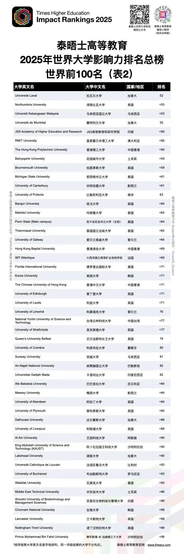 日前,2025年泰晤士高等教育世界大学影响力排名在土耳其举行的全球可持续发展大会上隆重揭晓。