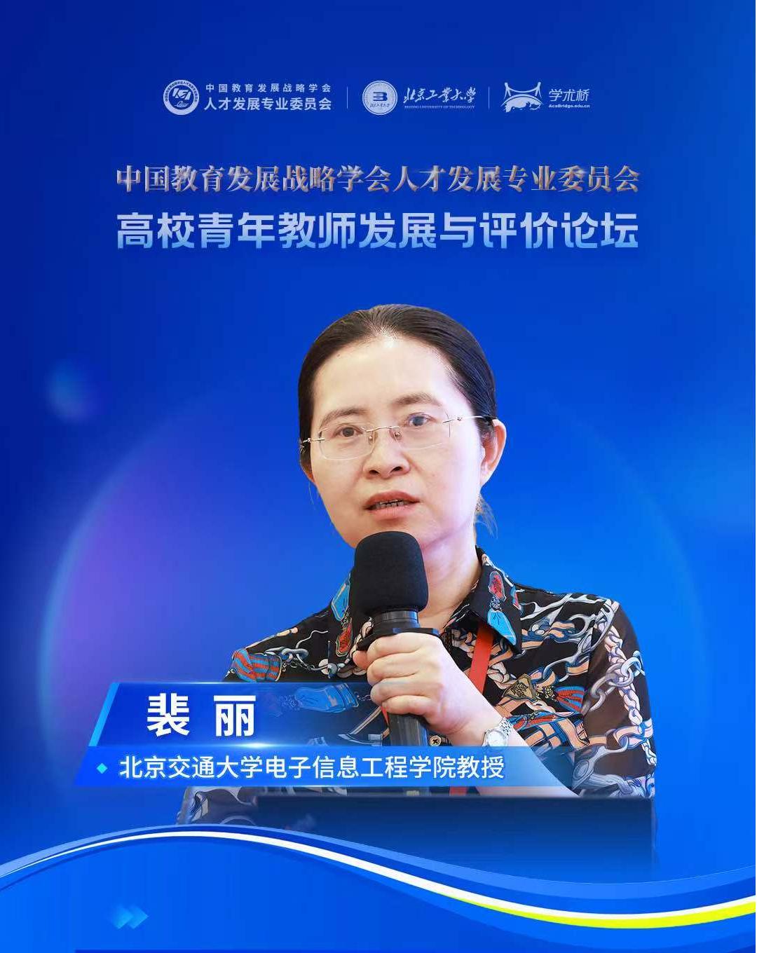 2025年7月16日,由中国教育发展战略学会人才发展专业委员会(以下简称“人才发展专委会”)主办、北京工业大学承办、中国教育在线·学术桥协办的“高校青年教师发展与评价论坛”在北京工业大学顺利举办。论坛期间,围绕高校青年教师队伍建设、发展与评价改革等话题,北京交通大学电子信息工程学院教授裴丽接受了人才发展专委会的现场采访。