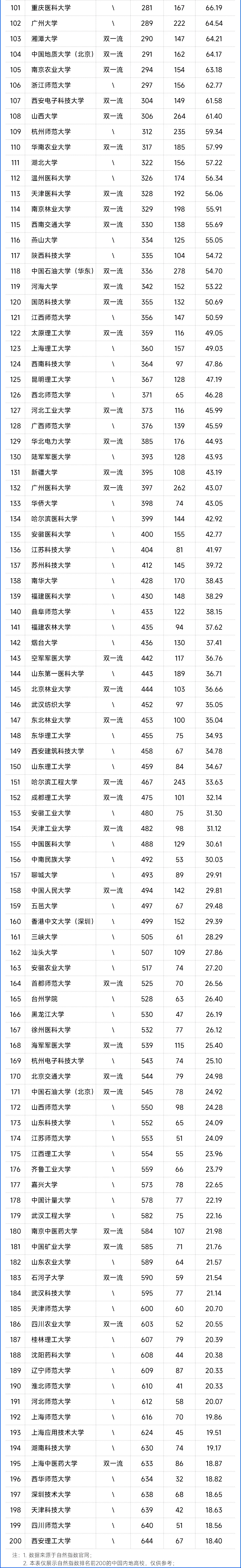 以上10所高校加上吉林大学、山东大学、南开大学、武汉大学、华中科技大学、南方科技大学、苏州大学、厦门大学、西安交通大学、中南大学、华南理工大学、天津大学、湖南大学、郑州大学、哈尔滨工业大学、同济大学,共计26校进入全球高校排名前50。