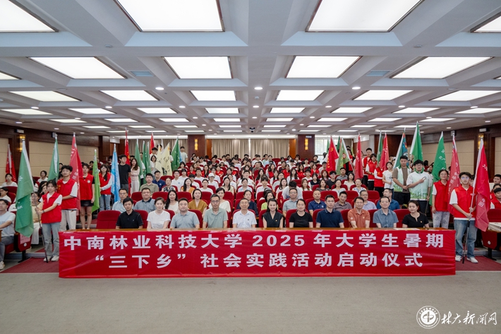 7月4日下午,中南林业科技大学2025年大学生暑期“三下乡”社会实践活动启动仪式在博文楼立德厅举行。党政办公室、宣传统战部、学生工作部、研究生院、团委等部门负责人,各学院党委副书记、团委书记、实践团队指导老师、大学生志愿者代表等300余人参加仪式。