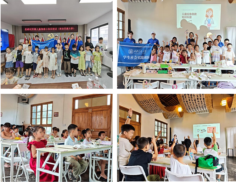在忠孝村、新民村的儿童课堂上,团队成员化身“健康守护者”,带来沉浸式急救技能教学: