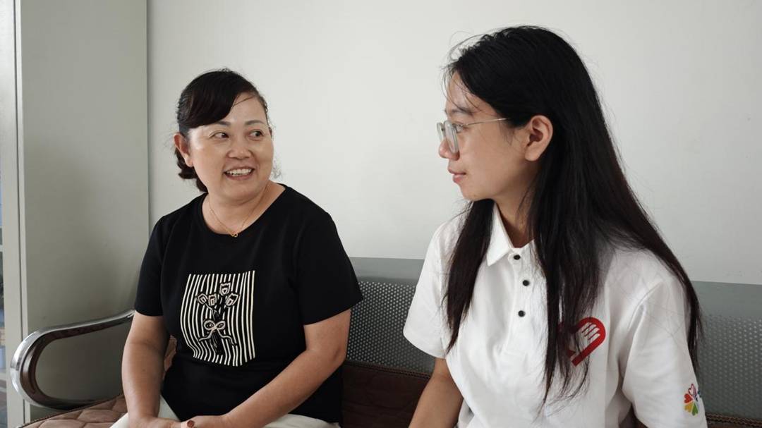 (图为志愿者正在采访唐阿姨 代玉洁 摄)