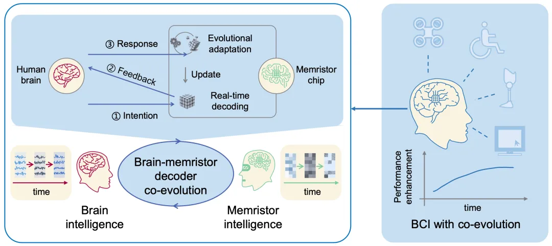 “这项研究首次提出了脑机协同演进的概念,并基于忆阻器神经形态器件完成了技术验证,通过长时程大脑与忆阻器神经形态器件之间的信息交互初步实现了生物智能与机器智能的互适应、互学习,为未来实用型脑机接口系统提供了重要的理论基础与技术支撑,也为脑机融合智能的发展开辟了新的方向。”国家高层次人才计划入选者、天津大学脑机海河实验室许敏鹏教授表示。“我们这款系统未来计划拓展到更多便携式或可穿戴脑机接口设备中,服务于消费级、医疗级等各类智能人机交互实用场景。”