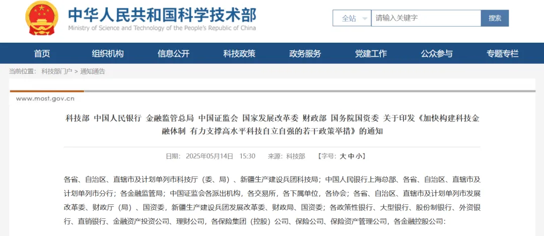 5月14日,科技部等七部门联合印发《加快构建科技金融体制 有力支撑高水平科技自立自强的若干政策举措。提出,设立“国家创业投资引导基金”。发挥国家创业投资引导基金支持科技创新的重要作用,将促进科技型企业成长作为重要方向,培育发展战略性新兴产业特别是未来产业,推动重大科技成果向现实生产力转化,加快实现高水平科技自立自强,培育发展新质生产力。