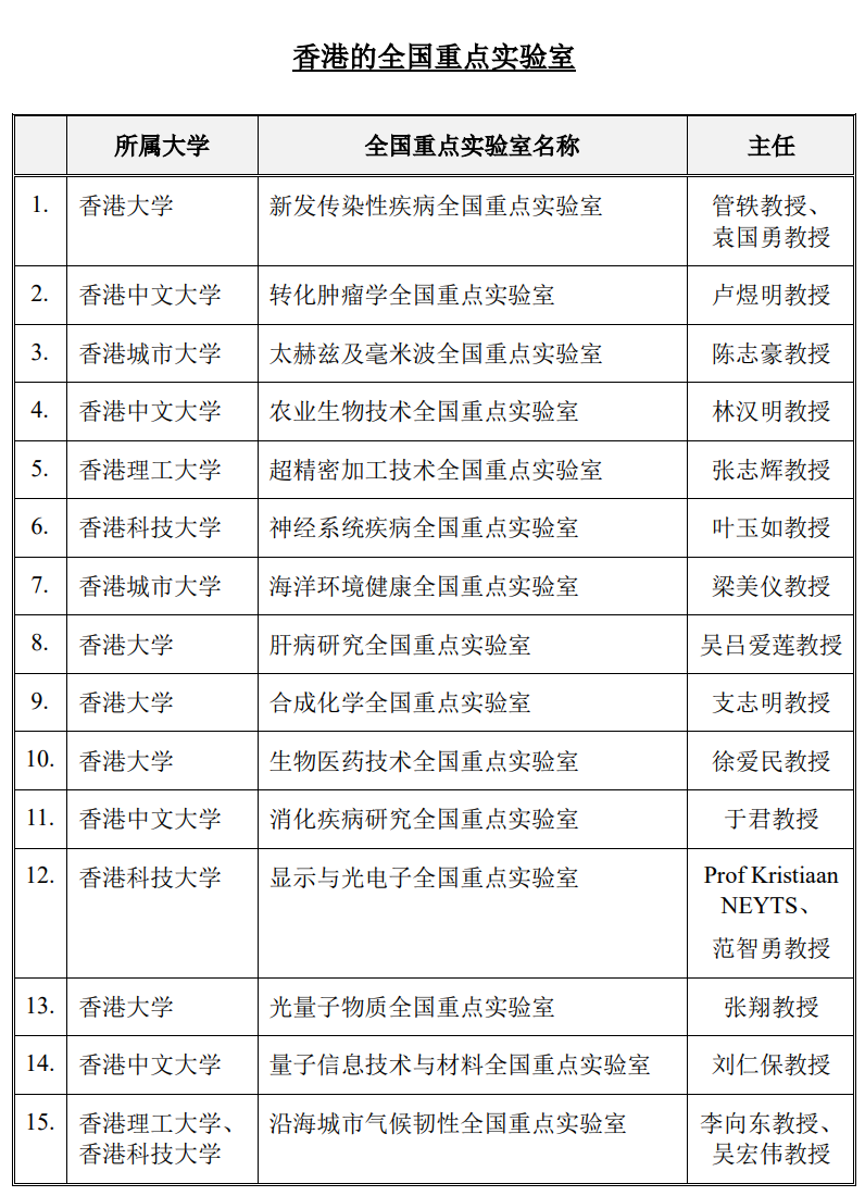 5所设有全国重点实验室的香港高校校长和15所在港全国重点实验室代表出席授牌仪式。具体名单如下: