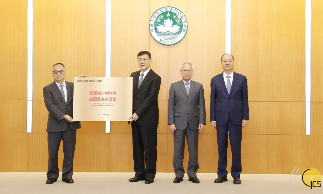 在行政长官岑浩辉见证下,国家科技部部长阴和俊颁授牌匾予澳门大学智慧城市物联网全国重点实验室。