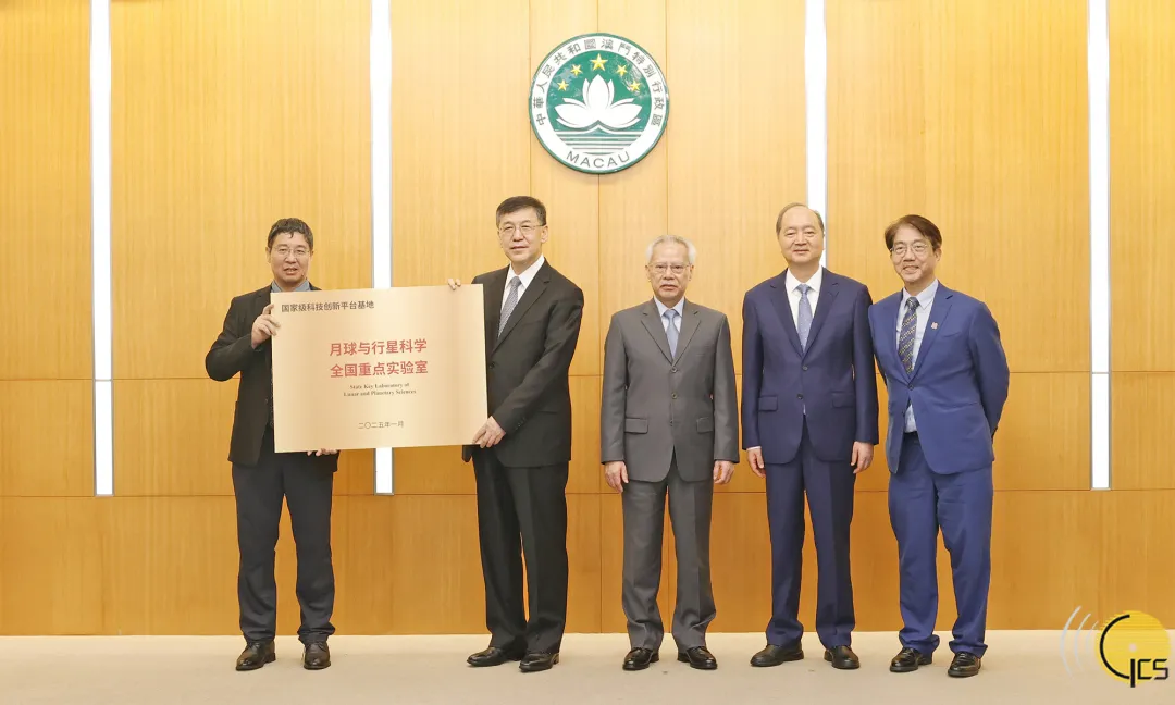 在行政长官岑浩辉见证下,国家科技部部长阴和俊颁授牌匾予澳门科技大学月球与行星科学全国重点实验室。